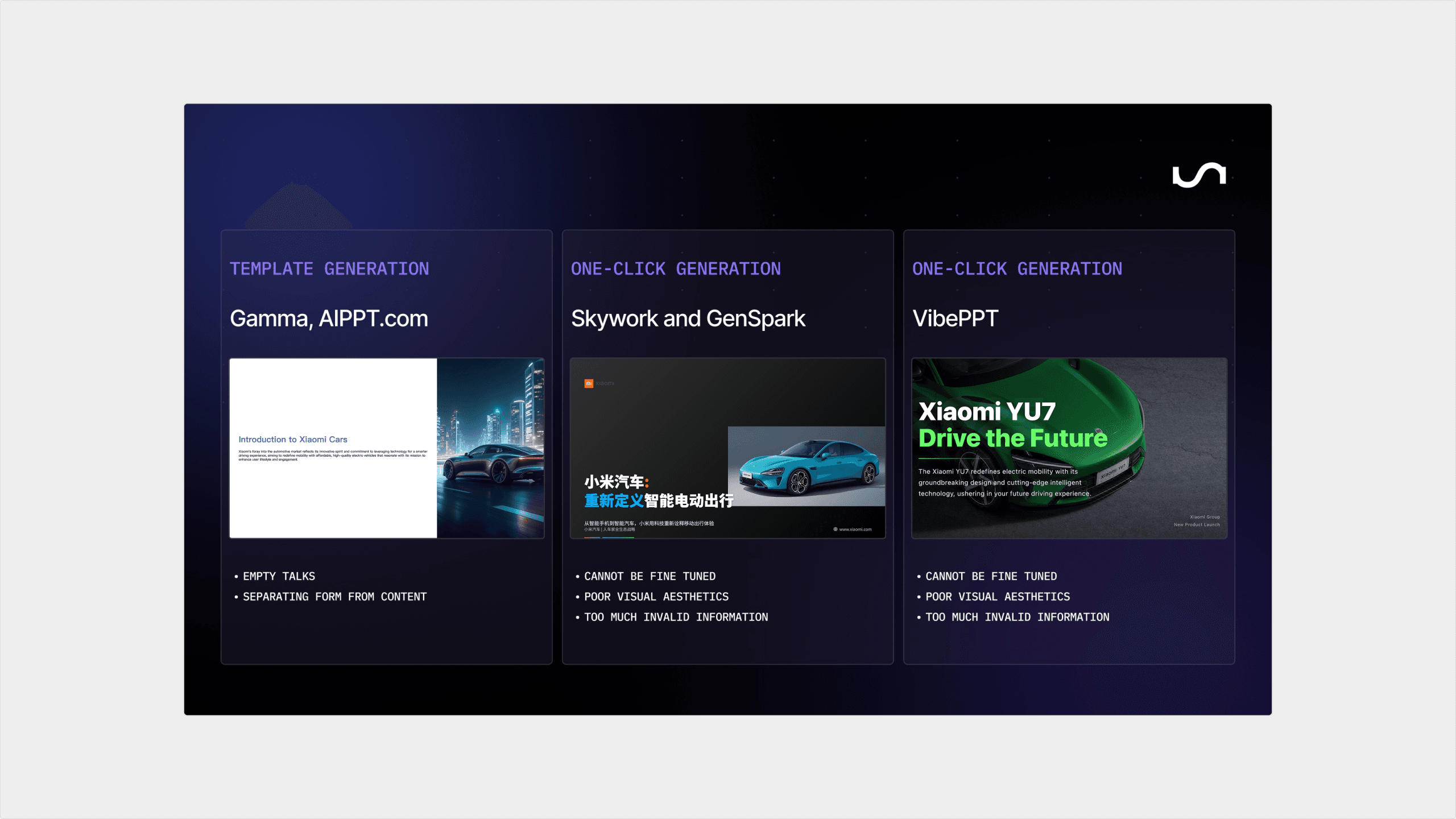 Inspired by the Agent on the semantic canvas, we blend the brand's color scheme to create a unique creative visual solution for VibePPT that combines technology and futurism.